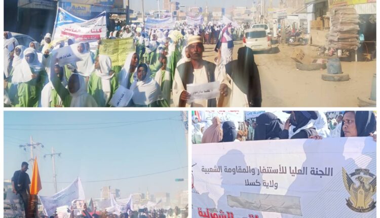نظّمت اللجنة العليا للتعبئة والاستنفار بالخدمة المدنية بولاية كسلا مسيرة مليونية حاشدة تحت شعار “كلنا الفاشر”، بمشاركة واسعة من العاملين والطلاب واتحاد شباب السودان، وبرعاية محلية كسلا. احتشدت الجماهير في ميدان الجمهورية، حيث خاطب والي كسلا وعدد من القيادات العسكرية والمدنية الحشد، مؤكدين دعمهم الكامل للقوات المسلحة في معركة الكرامة.