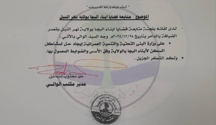 قرارات مهمة لوالي نهر النيل حول أبناء البجا